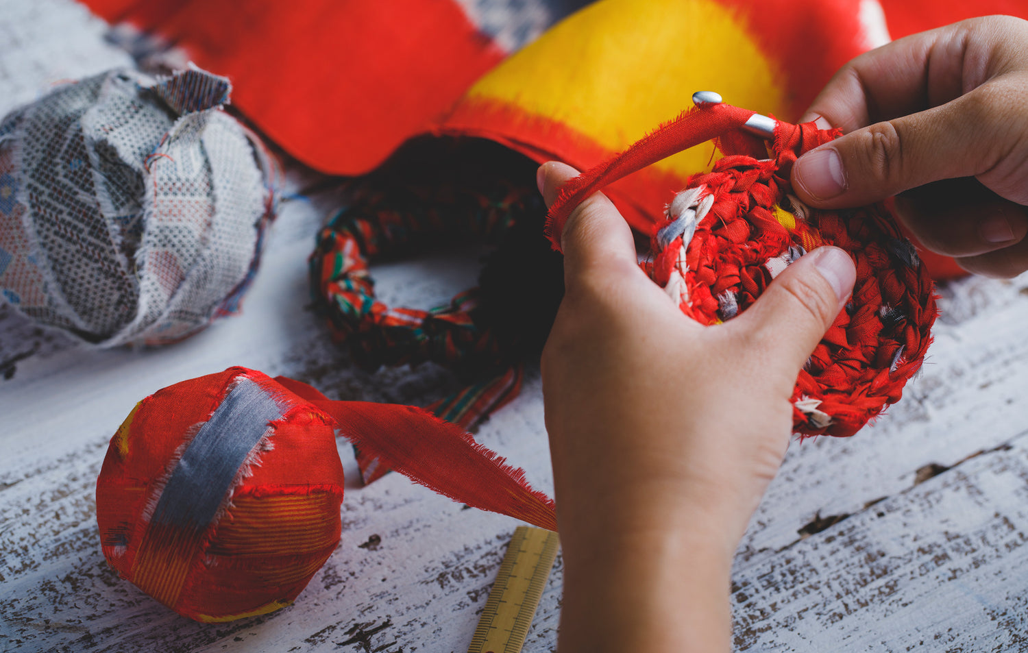 Kimonos are washed, unwound, cut, spliced and upcycled into yarn.