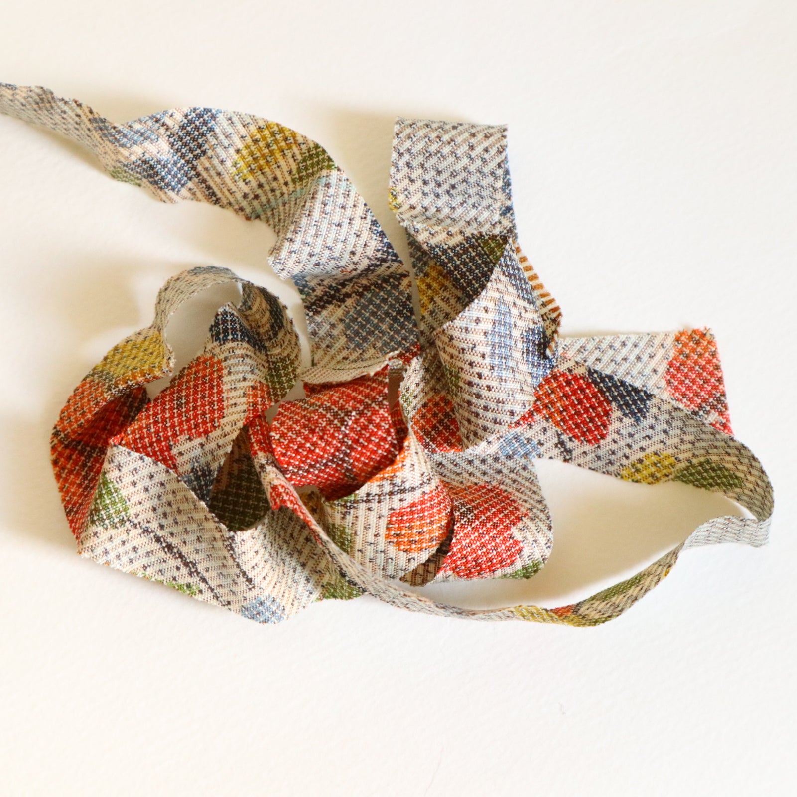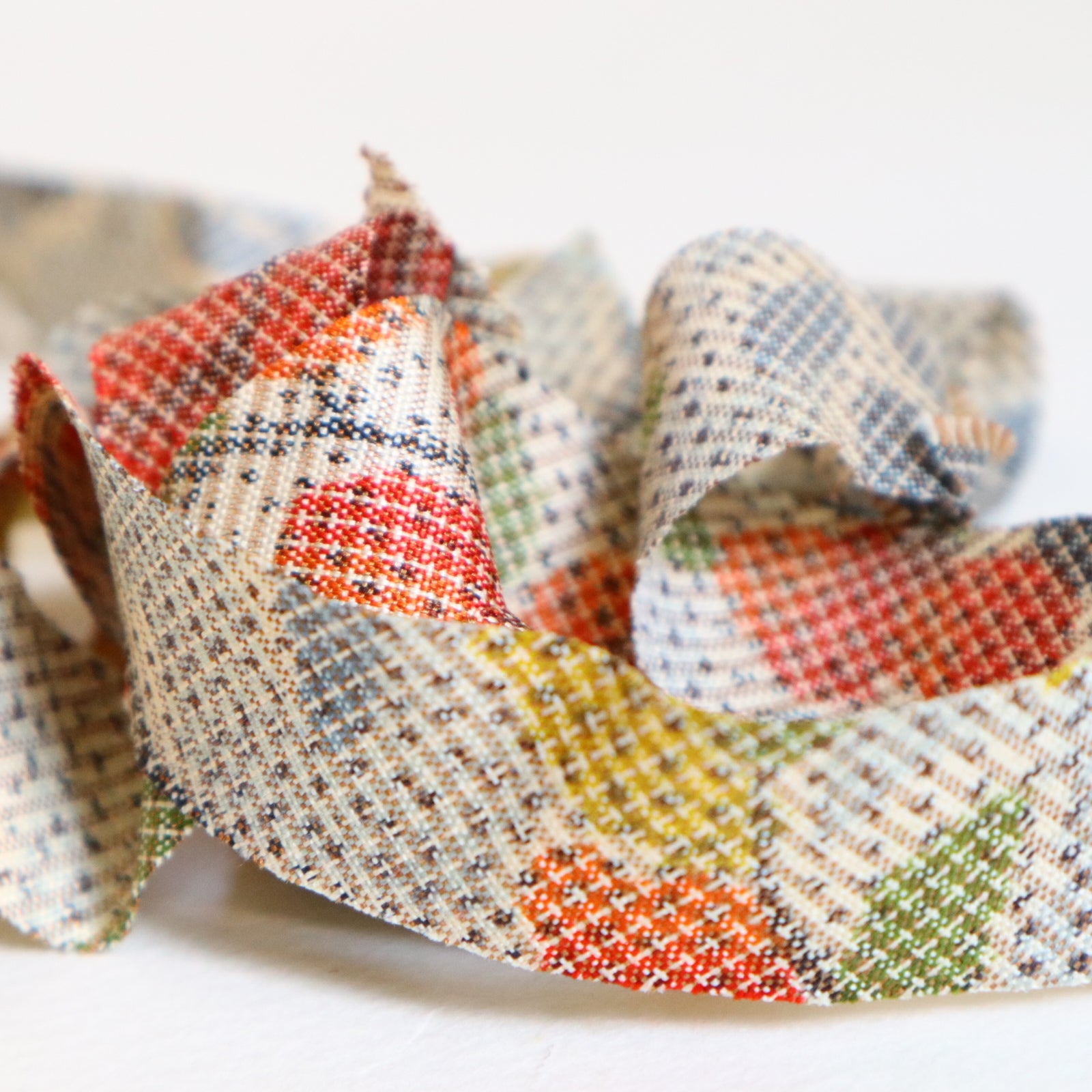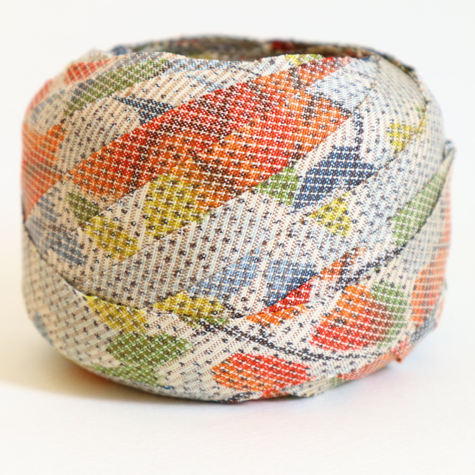 灰色に赤と青と黄色の花柄・紬(Y02509003)