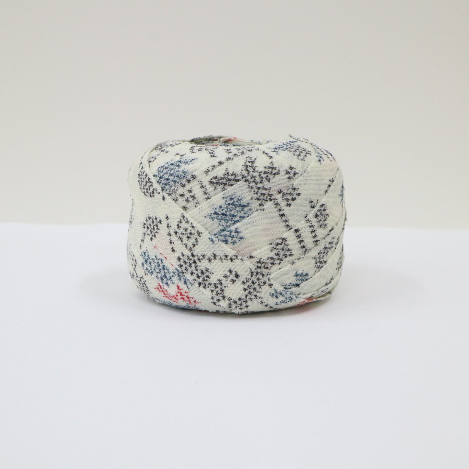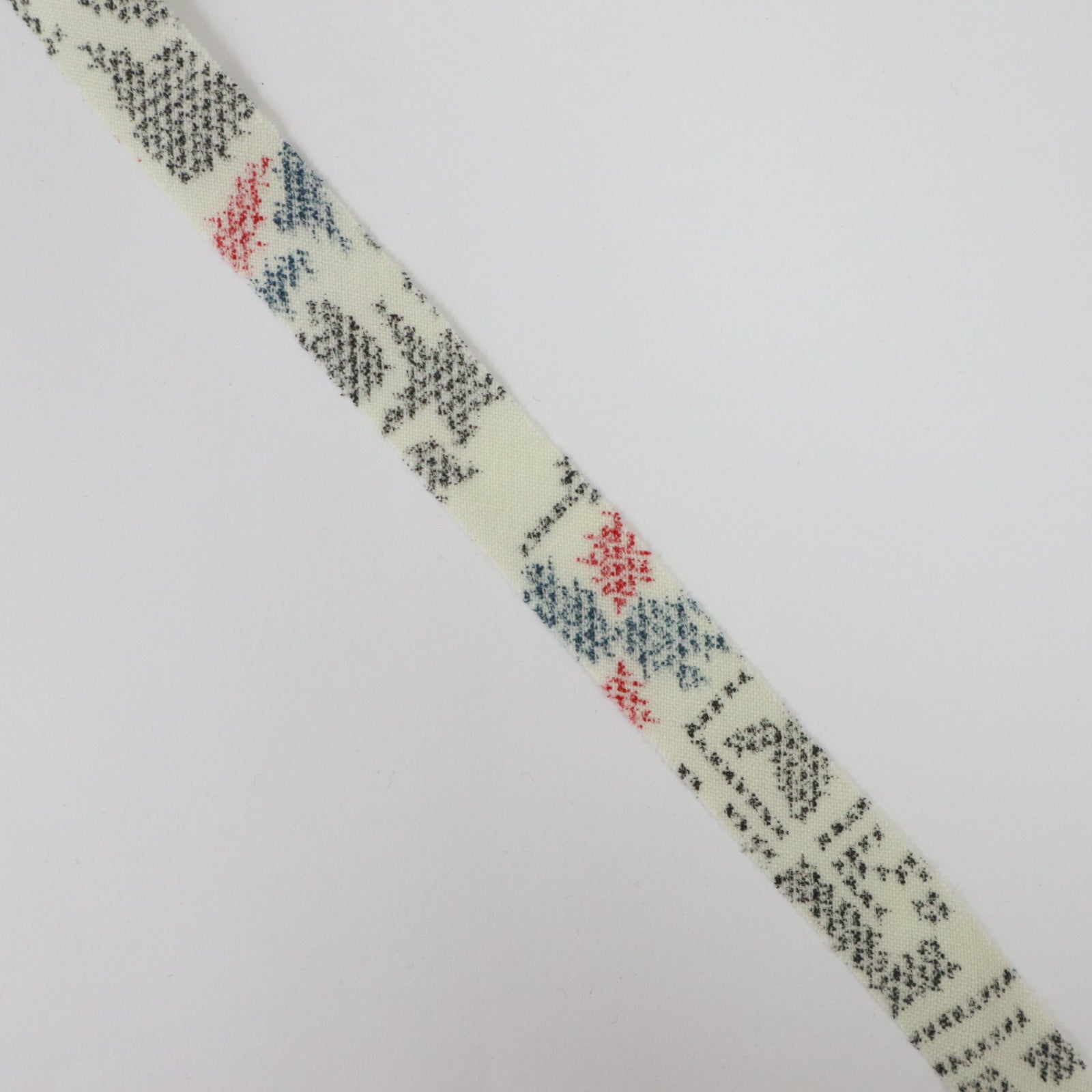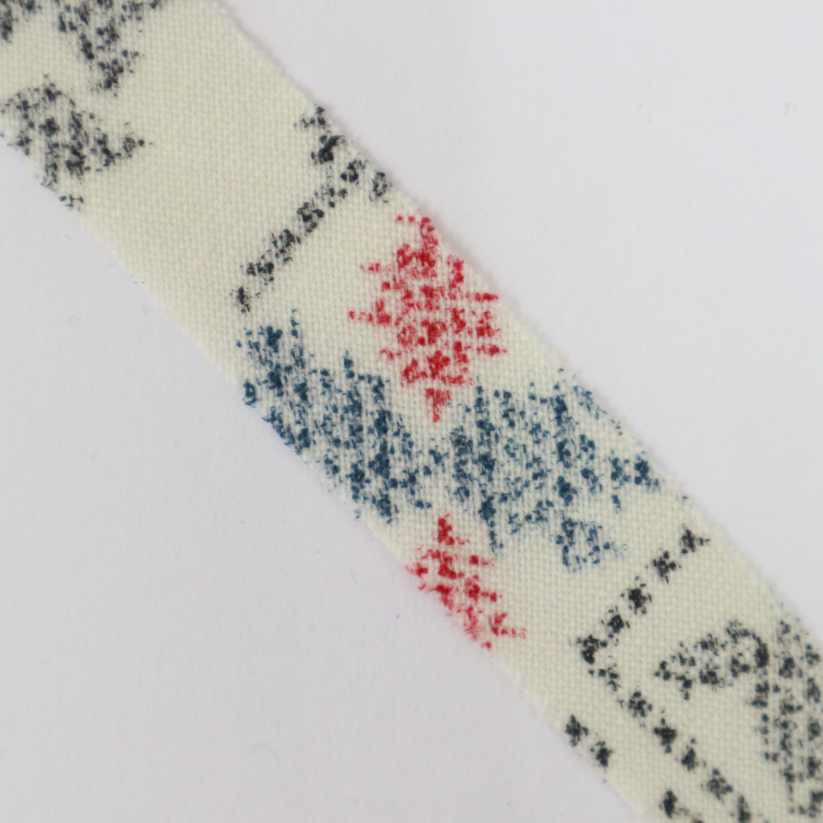 Black, blue, and red ikat pattern on white wool (Y02402011)