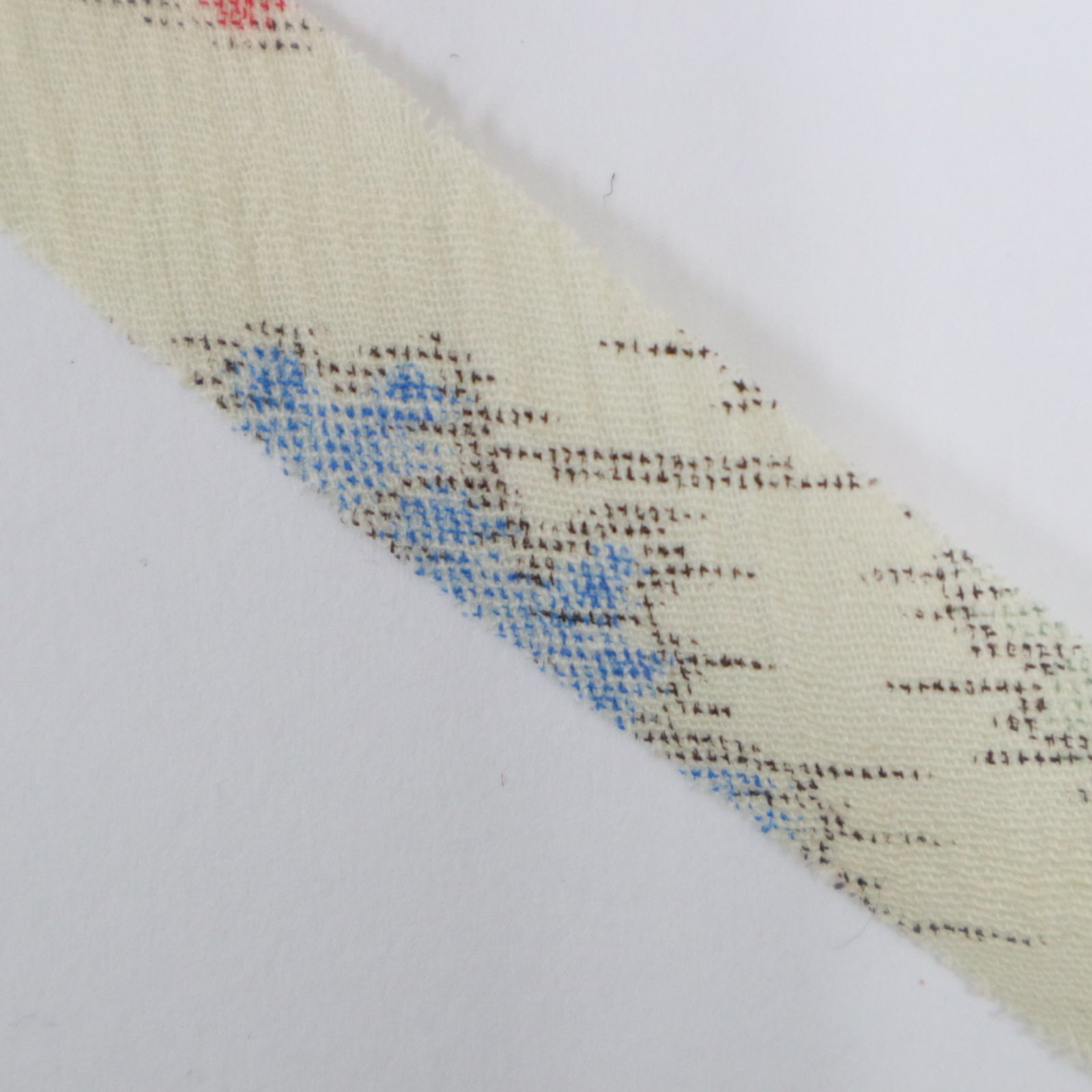 White tsumugi with autumn leaf pattern in pink, light blue, and yellow-green (Y02305009)