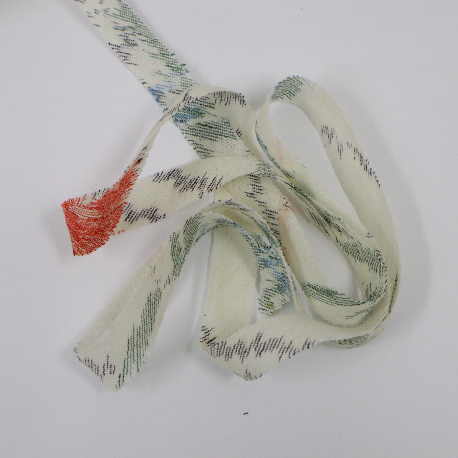 The kimono is untied, sewn together, and cut so that it doesn't fray.