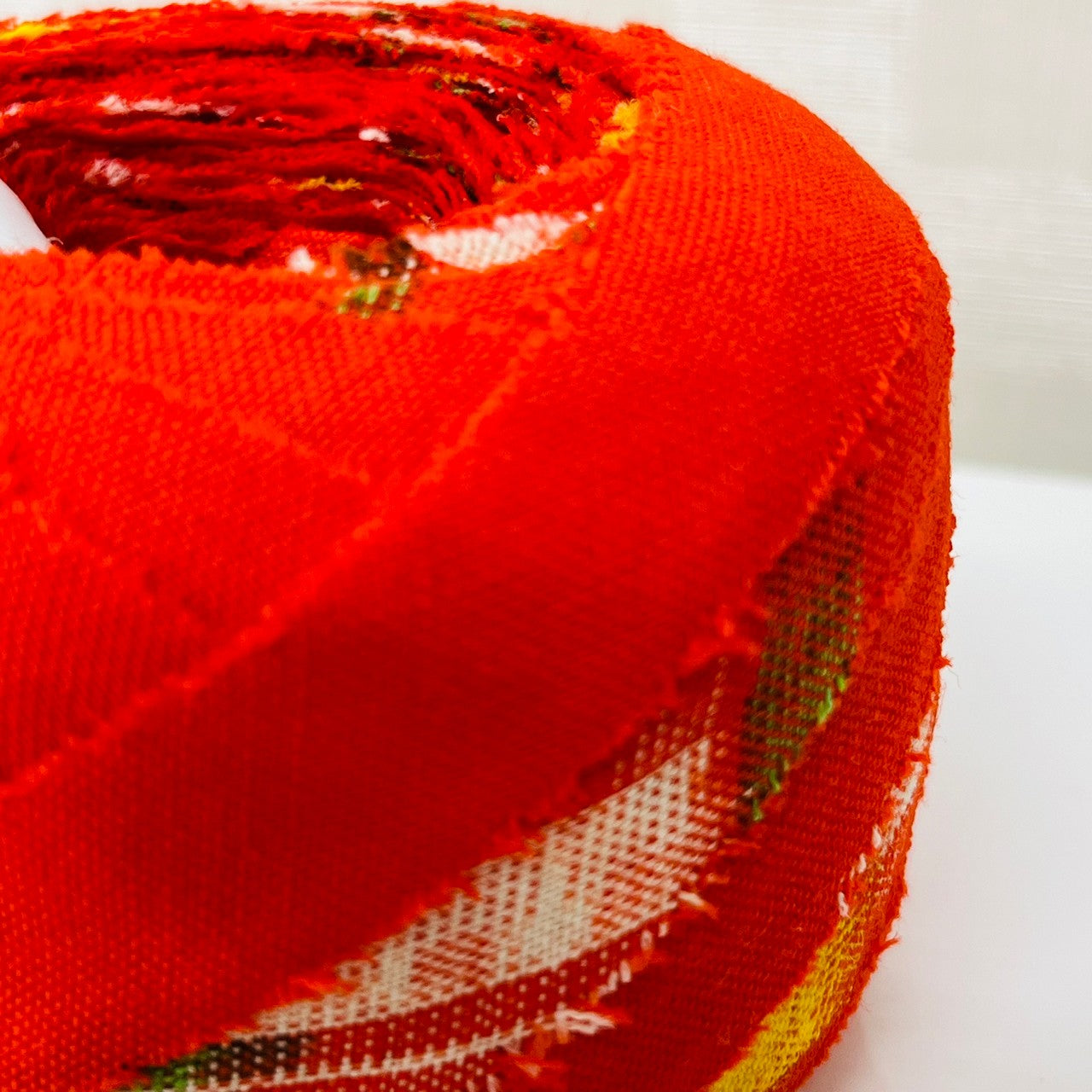 Yellow and white kasuri pattern on vermillion wool (Y00000025)