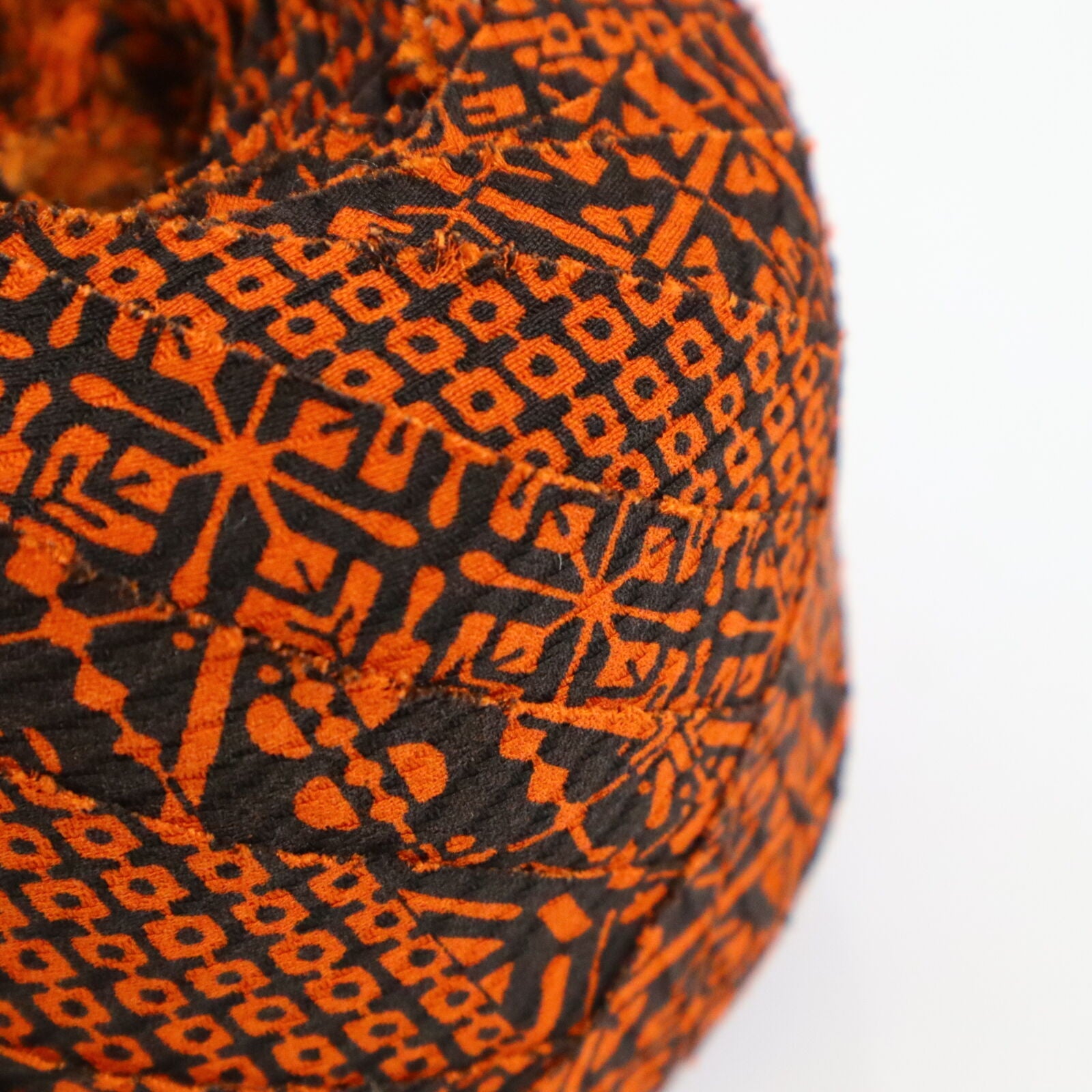 Orange pique and rhombus pattern on black, crepe (Y02009109)