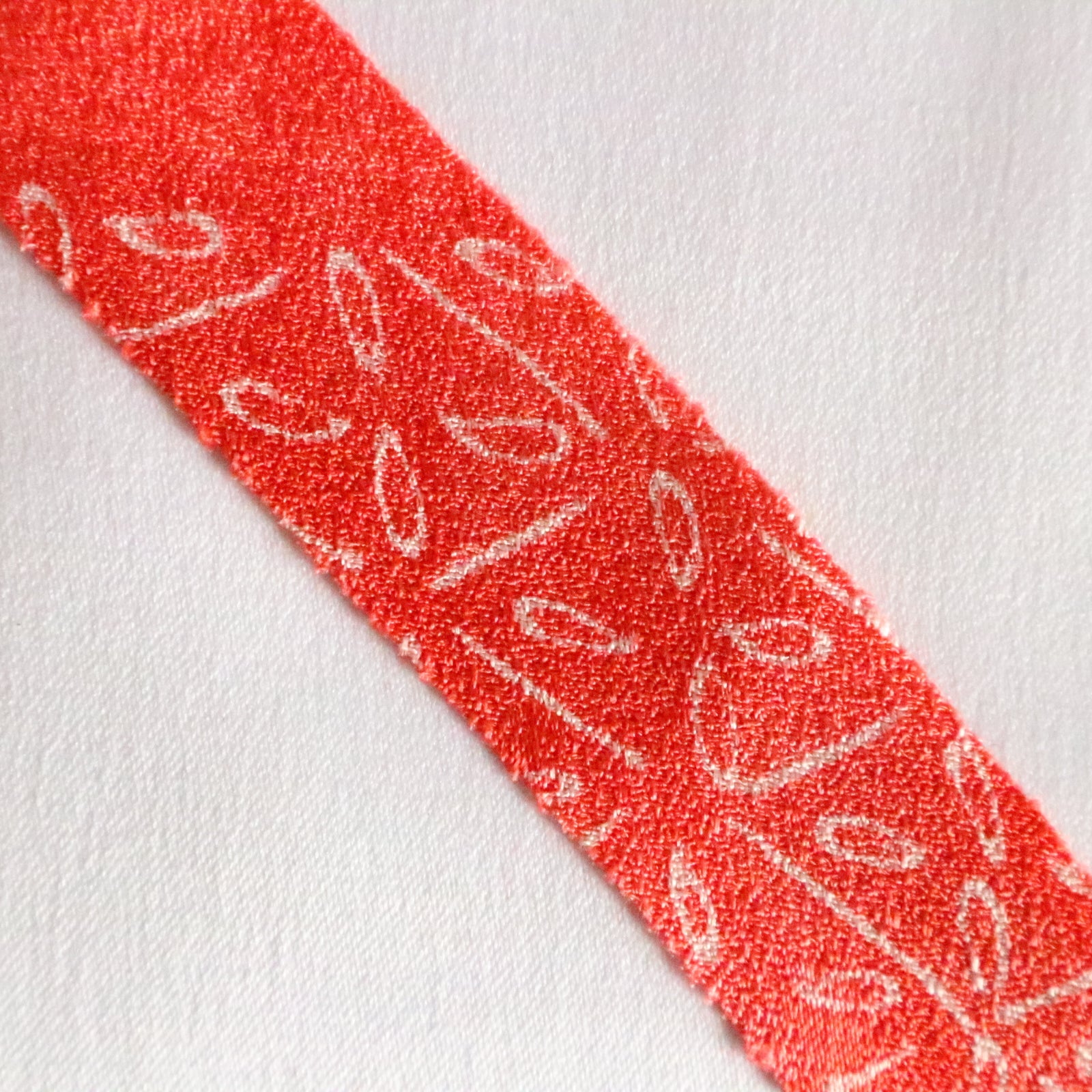 Coral bead color with white hail and abstract pattern, crepe (Y02312014)