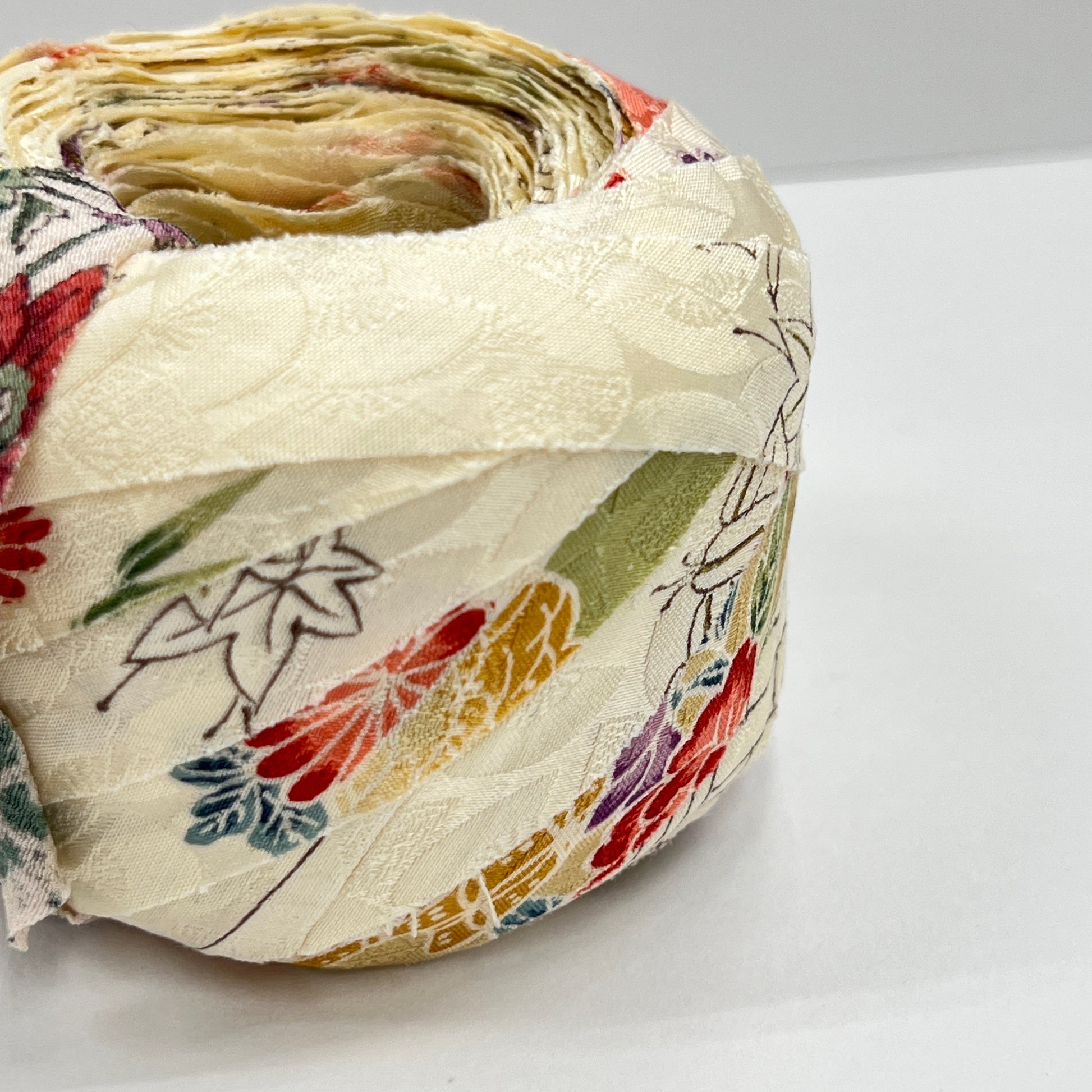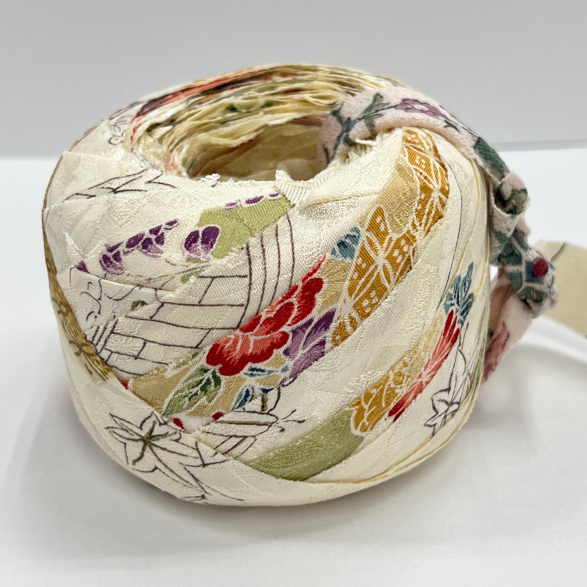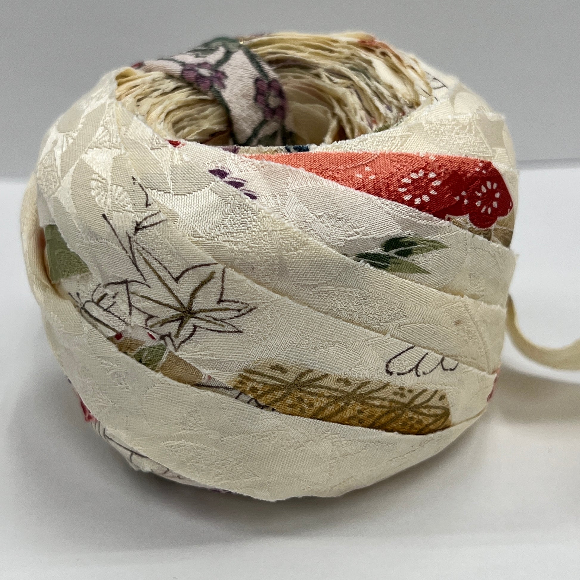 Kimono upcycle yarn made from unused kimono.