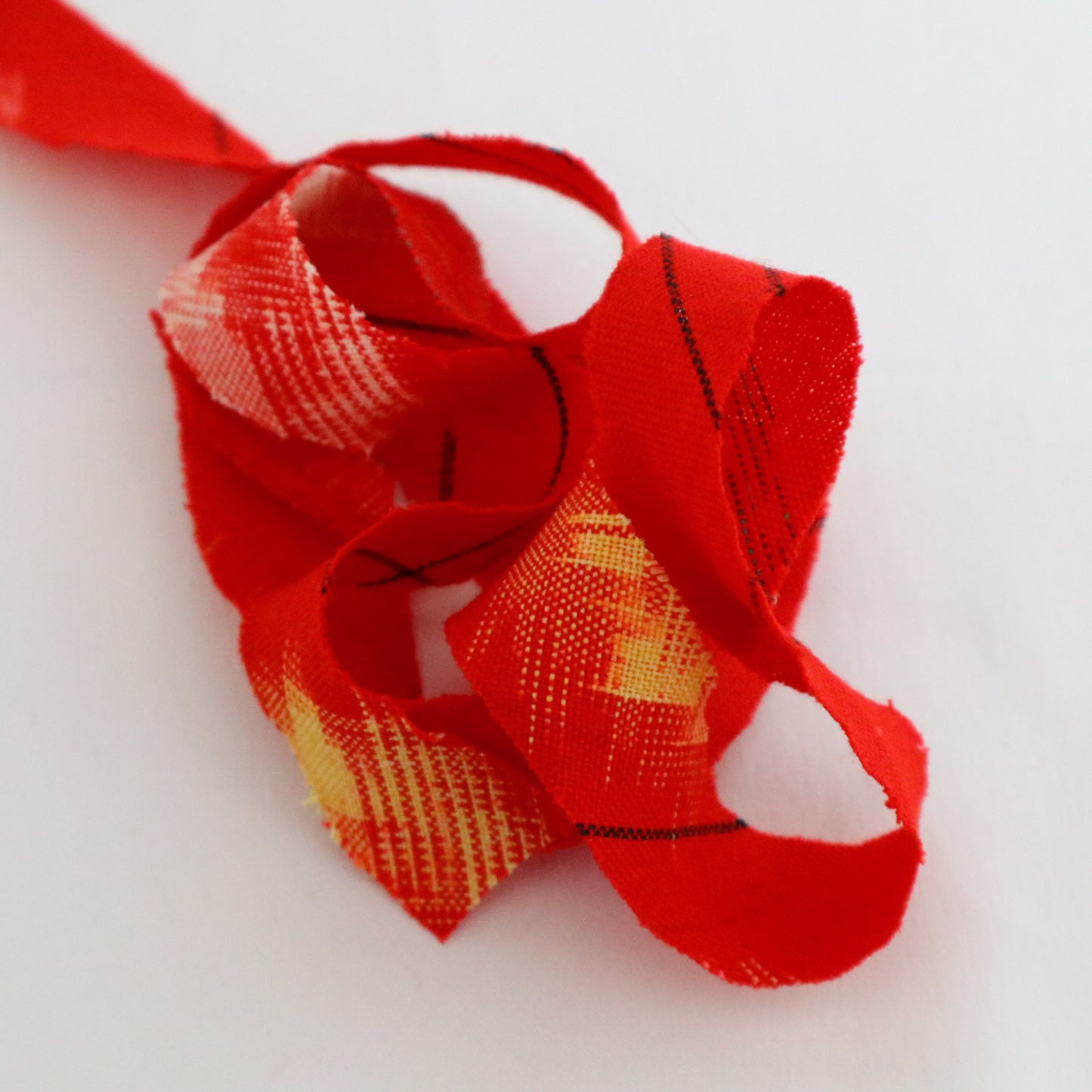 Red with yellow, white, and black ikat pattern, wool (Y02211006)